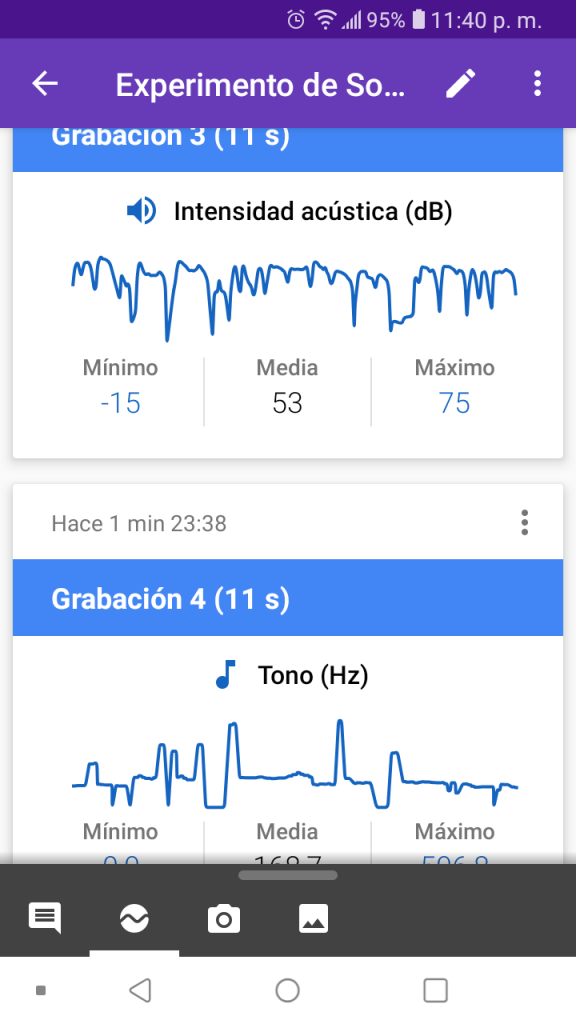 Aprovechando esta era digital y la contingencia, pudimos descargar un programa para hacer laboratorios virtuales : SCIENCE JOURNAL con el cual nos permitimos hacer una prueba para el cálculo de la TONALIDAD y de la INTENSIDAD del sonido cantando una canción.
