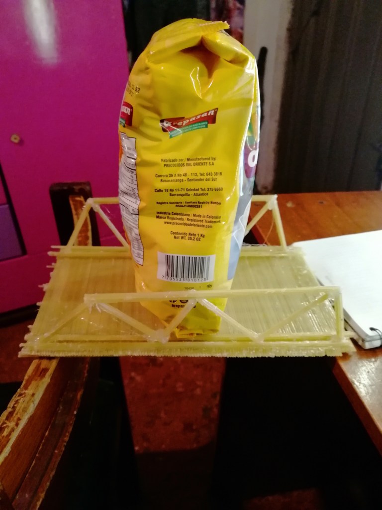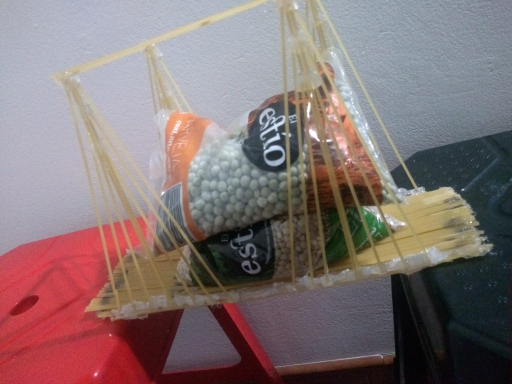 Aunque ya habíamos definido conceptualmente lo que era un VECTOR y una FUERZA, aún nos faltaba descubrir los diferentes tipos de fuerzas y como actuaban entre sí. Décimo estaba preparado para construir y diseñar una estructura elaborada con un frágil material: pastas de espaguetis. Mediante este laboratorio los estudiantes se permitieron descubrir la acción y reacción de las fuerzas de TRACCIÓN Y COMPRESIÓN, TENSIÓN, PANDEO, FLEXIÓN, PESO Y NORMAL, FRICCIÓN y muchas otras.
