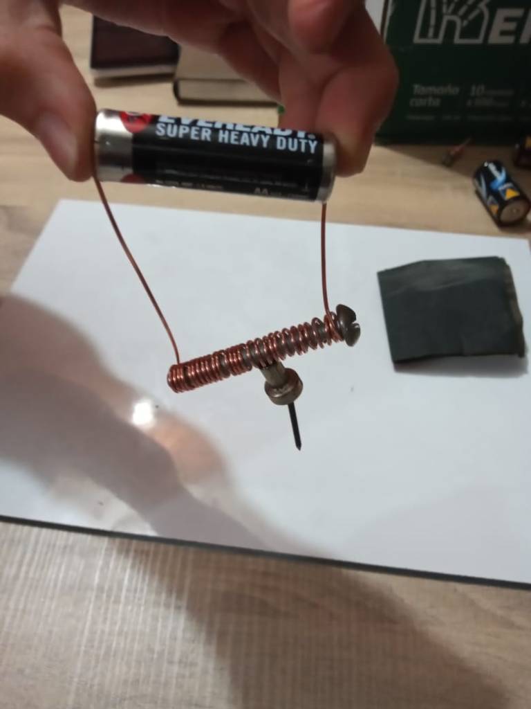 El trabajo del paso a paso en la creación del electroiman da resultados. EL número de espiras ( vueltas alrededor del tornillo) aumenta el campo magnético y permite levantar mayor carga.