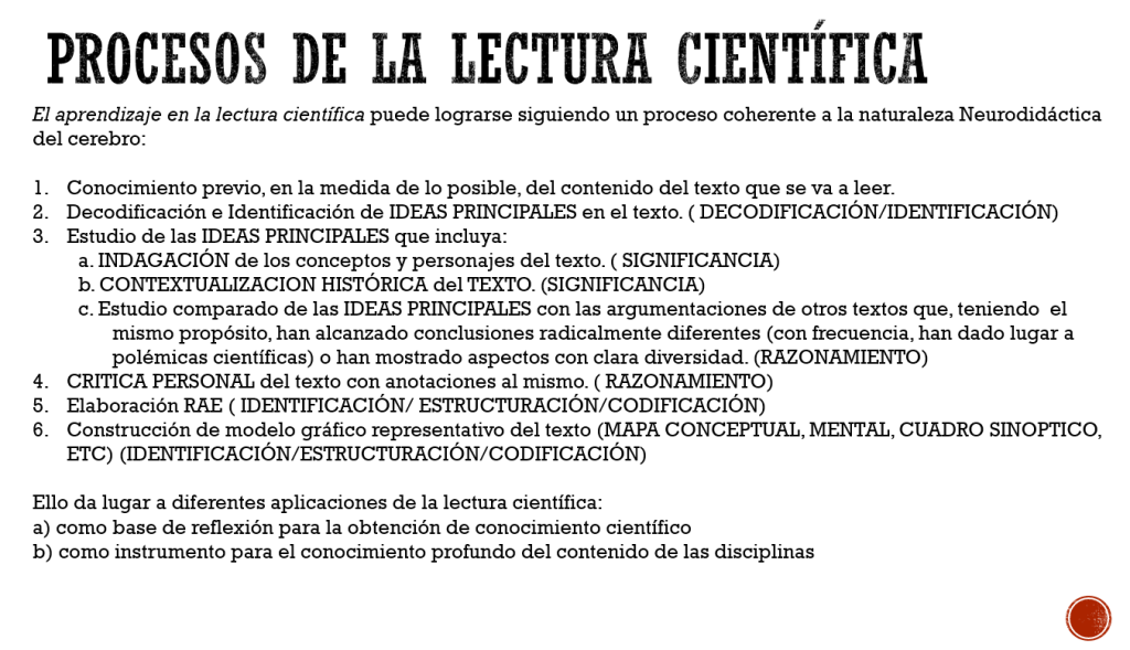 En conclusión existe un proceso de LECTURA CIENTÍFICA acorde al PROCESO NATURAL NEUROLÓGICO DE LECTURA DEL CEREBRO.