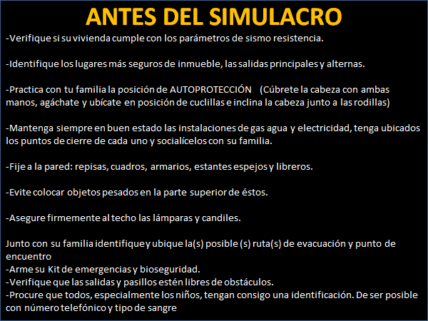 ANTES DEL SIMULACRO (Dialoga y verifica con tus padres la siguiente información)