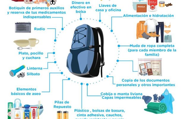 - Agua: considera dos litros por persona al día (incluye botellas chicas que son más fáciles de trasladar).