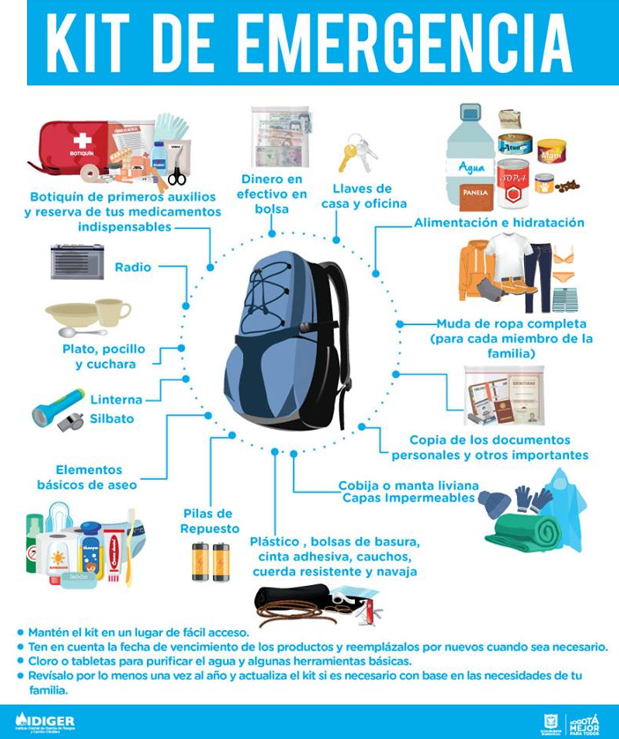 - KIT de bioseguridad: tapabocas, guantes, alcohol antiséptico, medicamentos