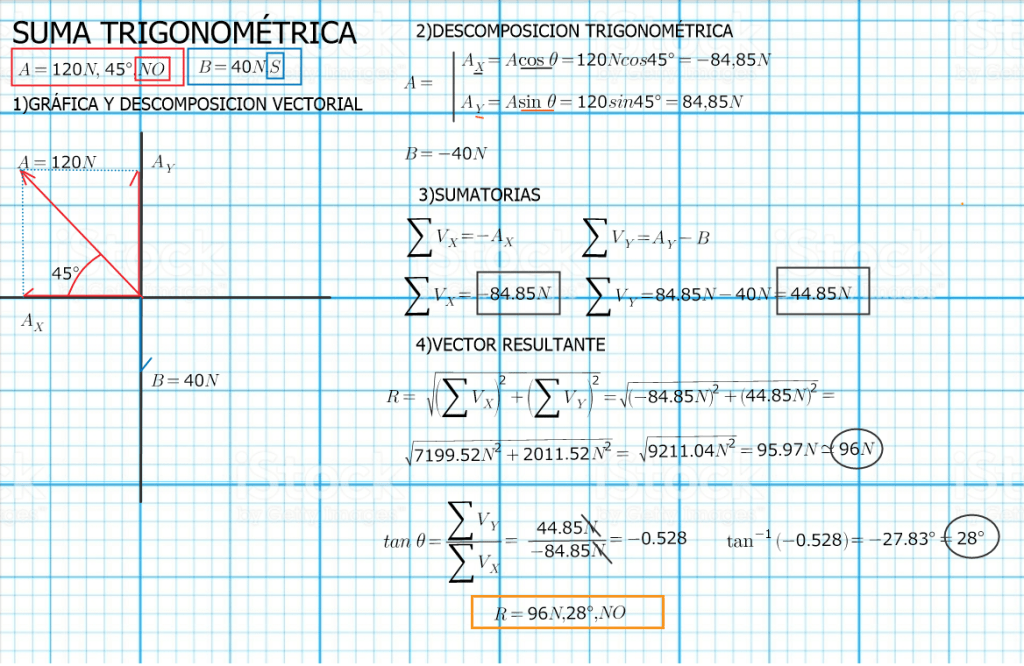 Trabajamos ejercicios de SUMATORIA TRIGONOMÉTRICA DE VECTORES: