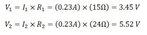 TERCER PASO: Conociendo el amperaje del circuito y sabiendo que es igual en todas las resistencias por encontrarse estas en Serie, podemos hallar el voltaje consumido cada resistencia: