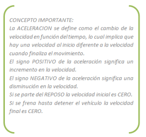 Esta es la condición real de la mayoría de los movimientos que se caracterizan por atrasarse o adelantarse en la unidad de tiempo, los medios de transporte y todo objeto que posee una masa se ve afectado por su peso, por la fricción y otros factores que no permiten un movimiento constante, ni perfecto. El cuerpo experimenta variaciones iguales en su velocidad durante tiempos iguales. Este movimiento también es llamado MOVIMIENTO UNIFORMEMENTE ACELERADO (M.U.A.) Las relaciones que regulan dicho movimiento son: De acuerdo con el problema y los datos que se tienen se selecciona la ecuación a emplear, como se ve en el ejemplo 2: