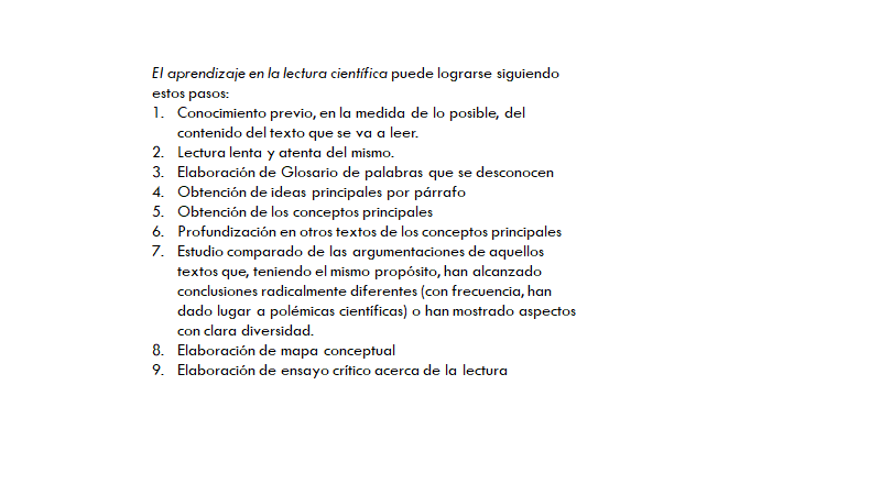 Una vez explicado estos objetivos de la lectura procederemos en nuestra próxima clase a realizar un ejercicio de lectura científica.