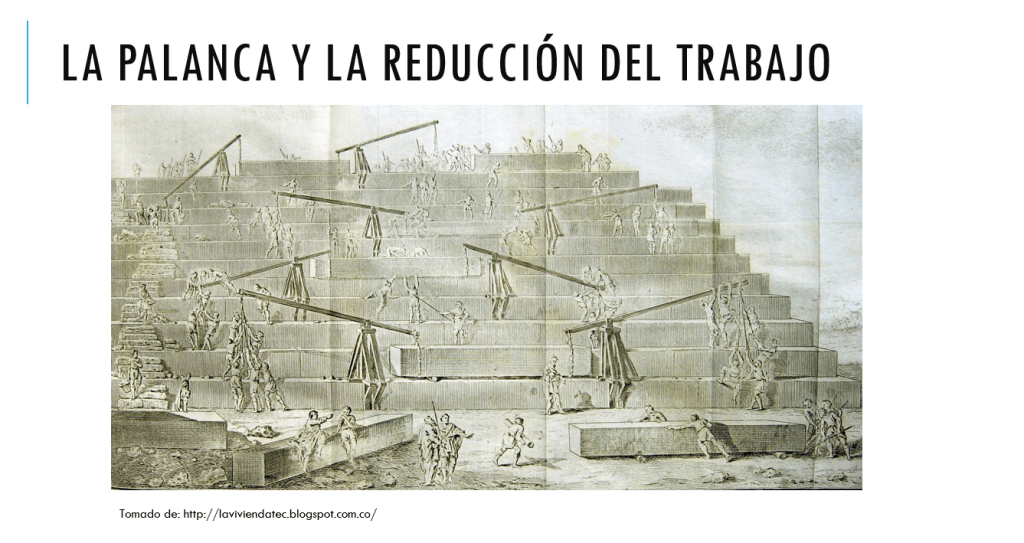 El diseño de elementos para lograr el montaje de las diferentes estructuras implica en uso de la PALANCA entro otros mecanismos de construcción.
