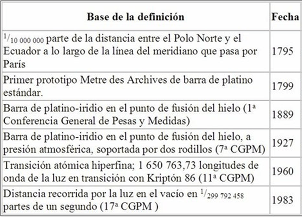 Y a partir de esta época tenemos varias definiciones del metro: