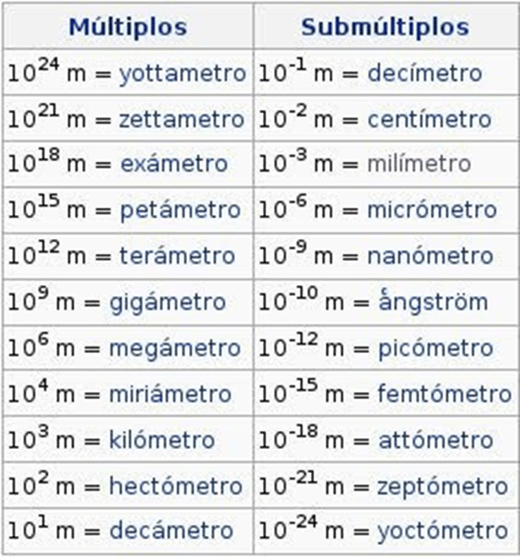 Con sus respectivos múltiplos y submúltiplos