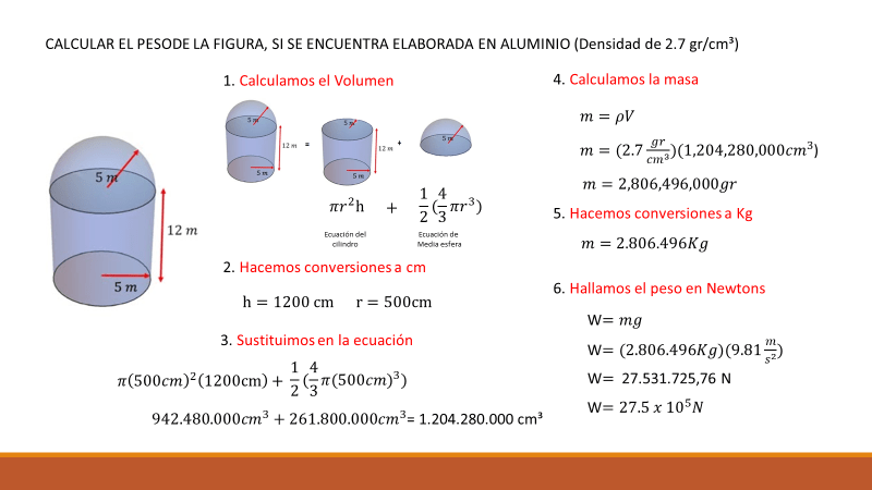 La primera propiedad que calcularemos de un objeto es LA FUERZA llamada PESO, a partir del VOLUMEN de una figura y la densidad del material que la constituye.