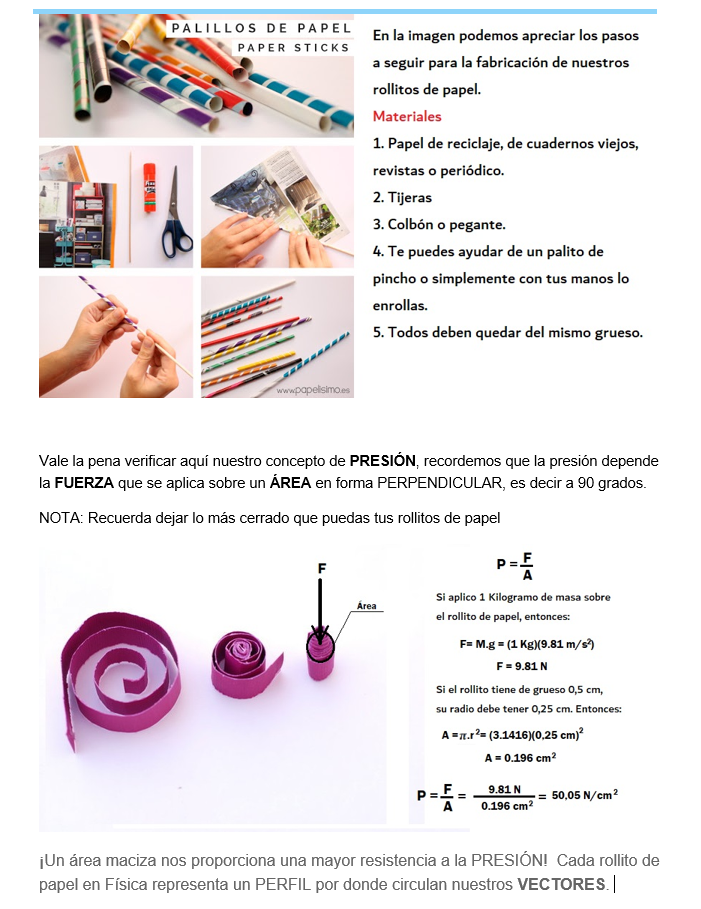Si los quieres hacer con rollitos de papel aquí te indicamos el cálculo de esfuerzos: