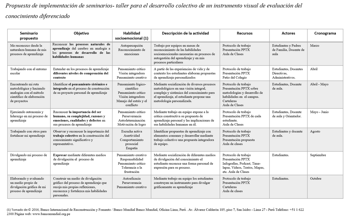 Partir del conocimiento que los y las estudiantes tienen es una buena estrategia para generar compromiso y significancia en la realización de su proyecto escolar, por ello es necesario diagnosticarnos acerca de lo que aspiramos a realizar en nuestras vidas involucrando desde el inicio del proyecto el desarrollo de habilidades socioemocionales. Reconocer inicialmente las habilidades que tenemos y aquellas que deseamos adquirir en ese camino de la vida es necesario para organizar nuestros objetivos y propósitos, de tal manera que los podamos vincular al desarrollo de nuestro proyecto de vida, que encaminado desde un proyecto escolar nos pueda dar luces o analogías a los procesos requeridos para alcanzar el éxito. Para lograr las estadísticas presentadas se realiza un SEMINARIO ACTITUDINAL de ingreso durante 2 semanas, en el cual se efectúa un diagnóstico mediante encuesta personalizada, entrevista y observación de la trayectoria académica del estudiante.
