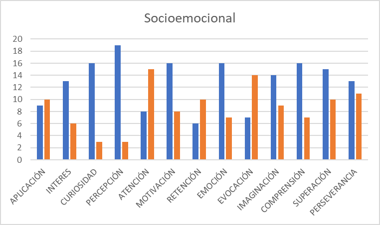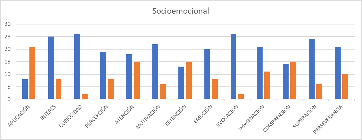 En el grado 1102 las habilidades socioemocionales mas desarrolladas son la CURIOSIDAD, EL INTERÉS y LA EVOCACIÓN muy relacionadas con sus propios intereses en este campus, sin embargo esperan desarrollar el concepto APLICATIVO del conocimiento, la COMPRENSIÓN, ATENCIÓN Y RETENCIÓN del mismo.