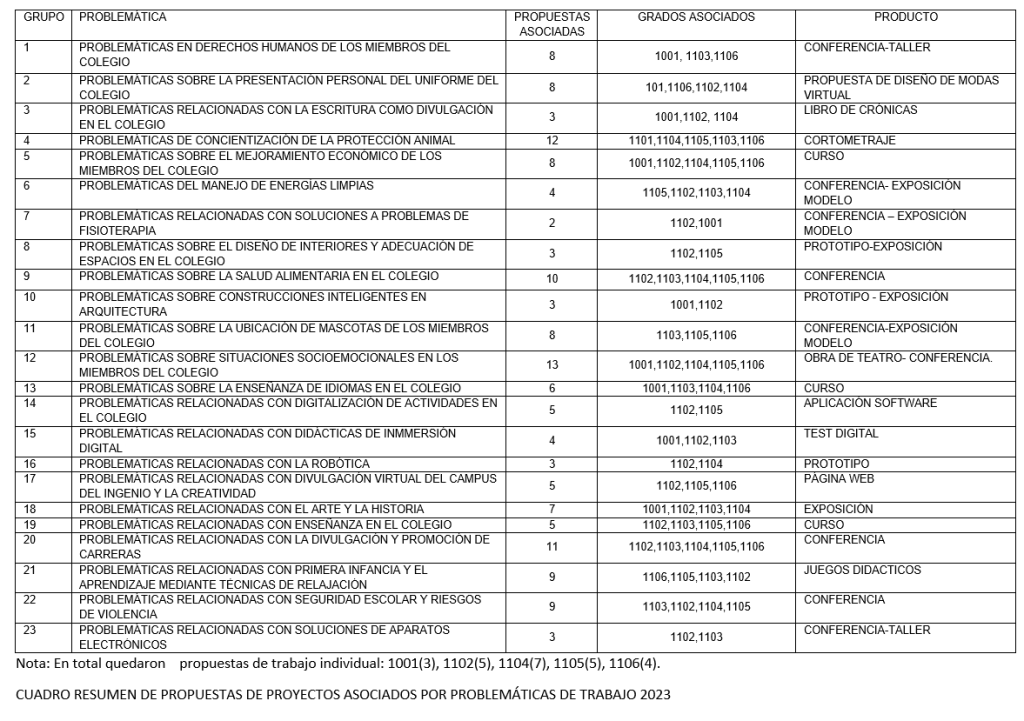 Nota: La información del proceso quedó registrada en el Classroom de cada curso. Las tendencias Socio-Económicas cubren la salud, la educación, el derecho, el medio ambiente, el emprendimiento y la comunicación.