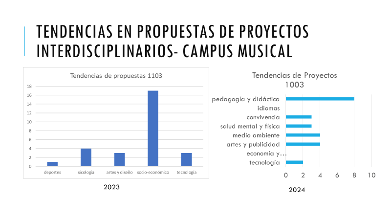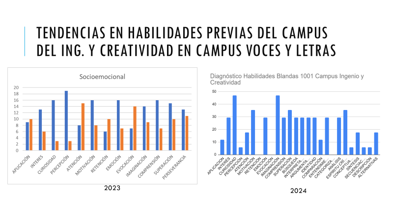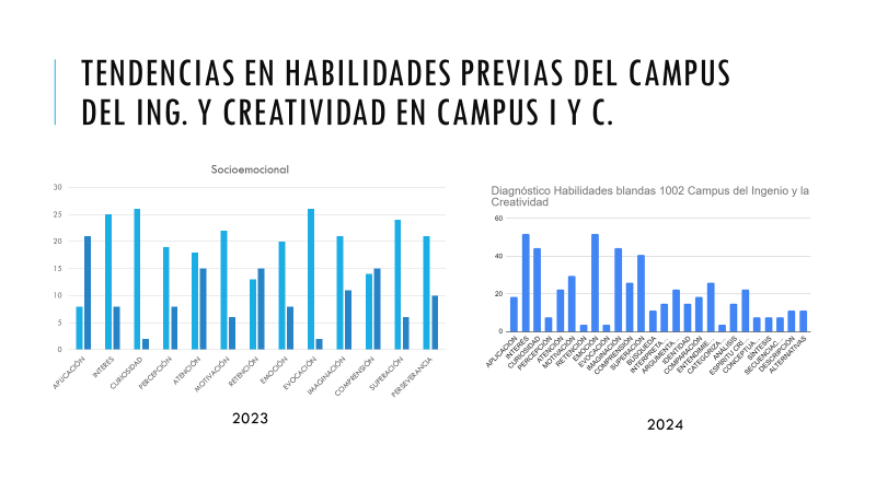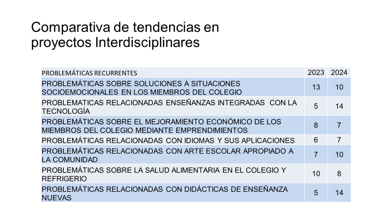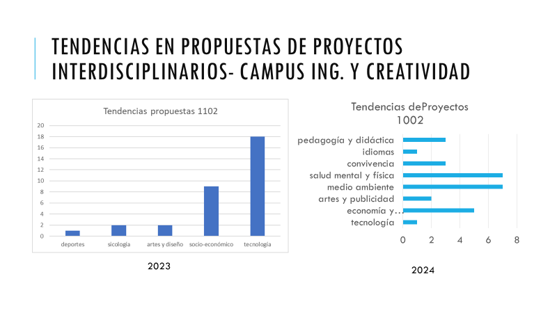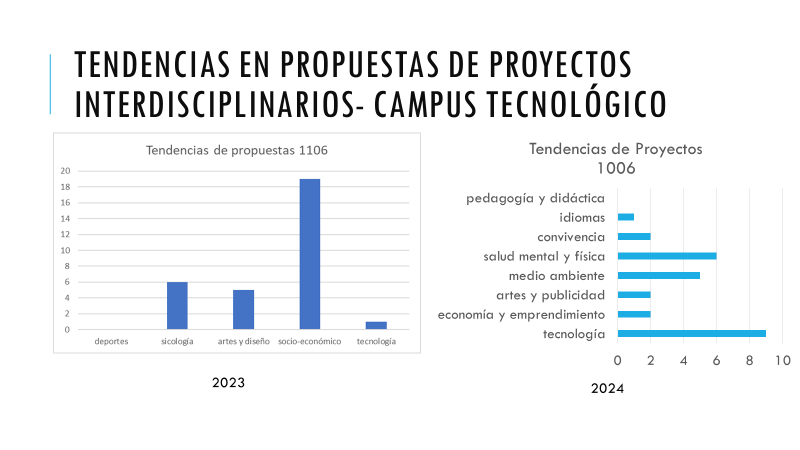 De igual forma se hizo el análisis comparativo entre las tendencias de proyectos presentados por los estudiantes en los diferentes campus durante los años 2023 y 2024. Se hace notación aquí acerca del objetivo primordial del este proyecto que es identificar la aplicación de habilidades del campus en la orientación profesional de los estudiantes. Algunos ejemplos pueden ser:
