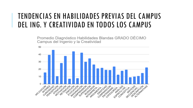 Las habilidades requeridas en el CAMPUS DEL INGENIO Y LA CREATIVIDAD se transversalizan en otros campus y surgen tendencias que se pueden verificar como intencionalidades del campus en otros enfoques, a razón de ejemplo se pueden mostrar las siguientes: