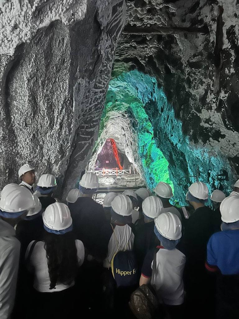 En las imágenes se puede observar lo espectacular de la MINA, nuestros estudiantes de 602, 702, 802, 902, 1002 y 1102 estaban fascinados. Los docentes DANIEL RODRIGUEZ y ARTURO BASTIDAS realizaban explicaciones adicionales a los chicos y chicas desde sus áreas de conocimiento en BIOLOGÍA-QUÍMICA y MATEMÁTICAS respectivamente.