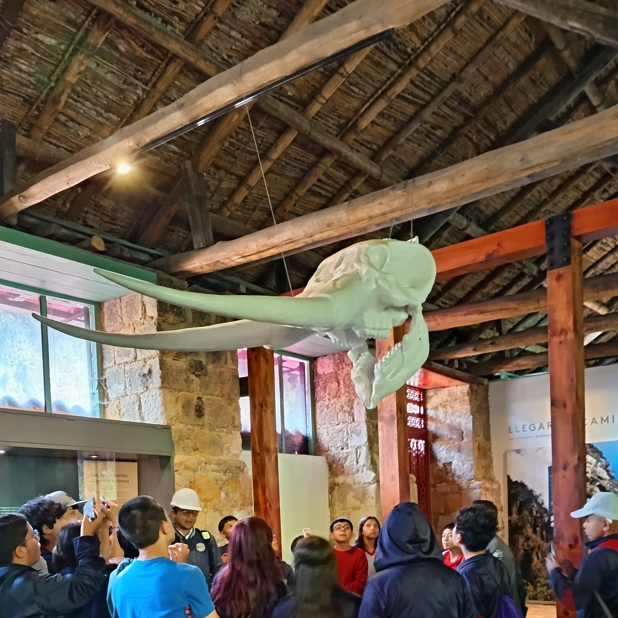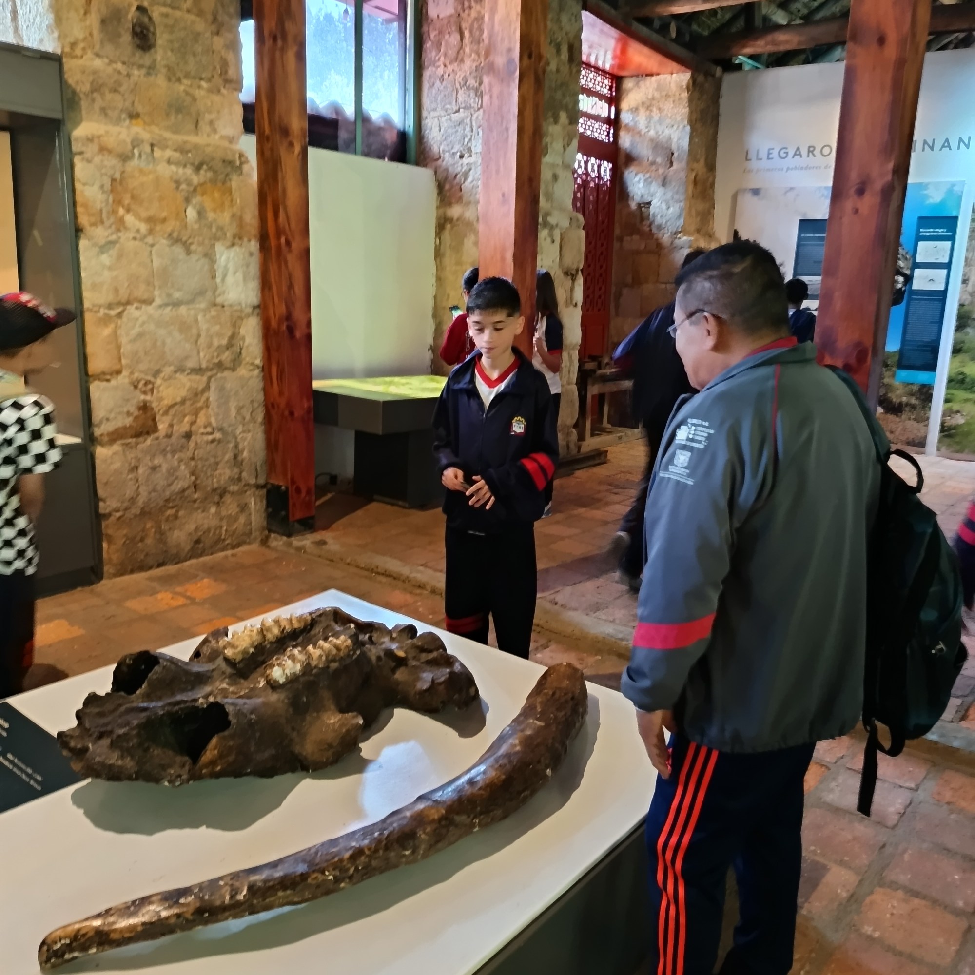 En las anteriores fotos podemos ver al docente JAIRO CORTÉS quien nos acompañó con los grupos de estudiantes explicando acerca los restos de un MAMUT encontrado en esta región. Los estudiantes se encontraban en el MUSEO PALEONTOLÓGICO de NEMOCÓN.